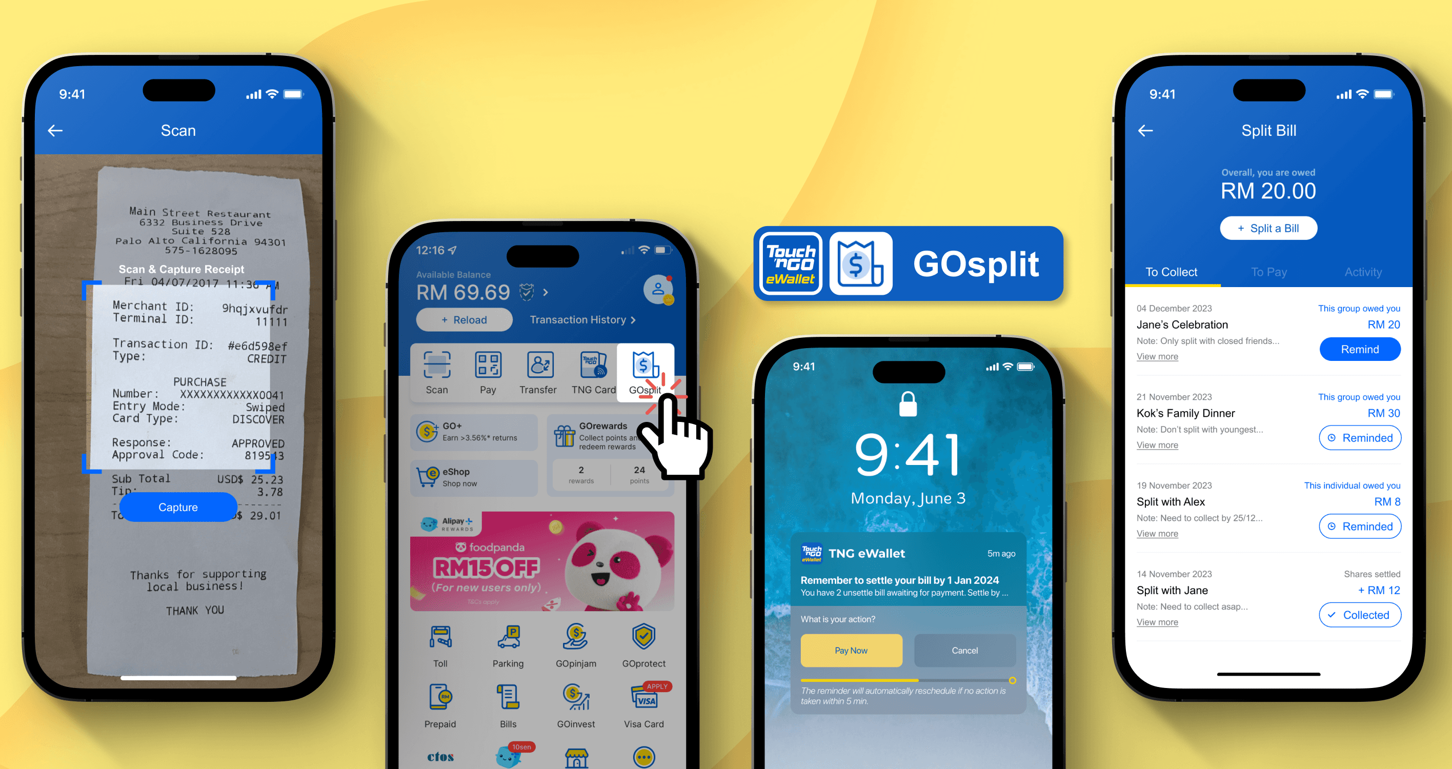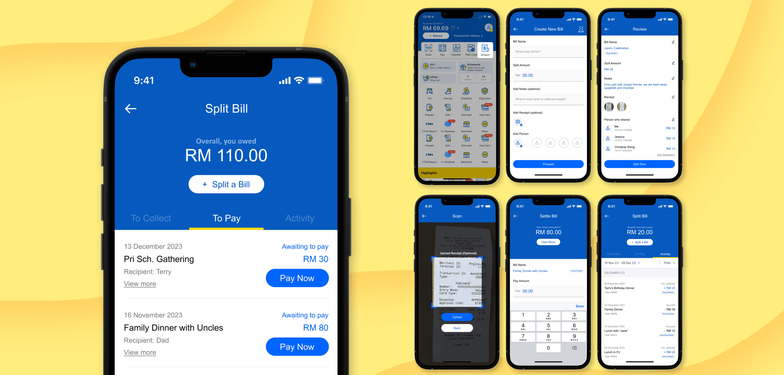 However, despite its seamless and convenient in-app cashless transactions, it lacks a feature to allow users to efficiently split bills and collect their shares within the app.