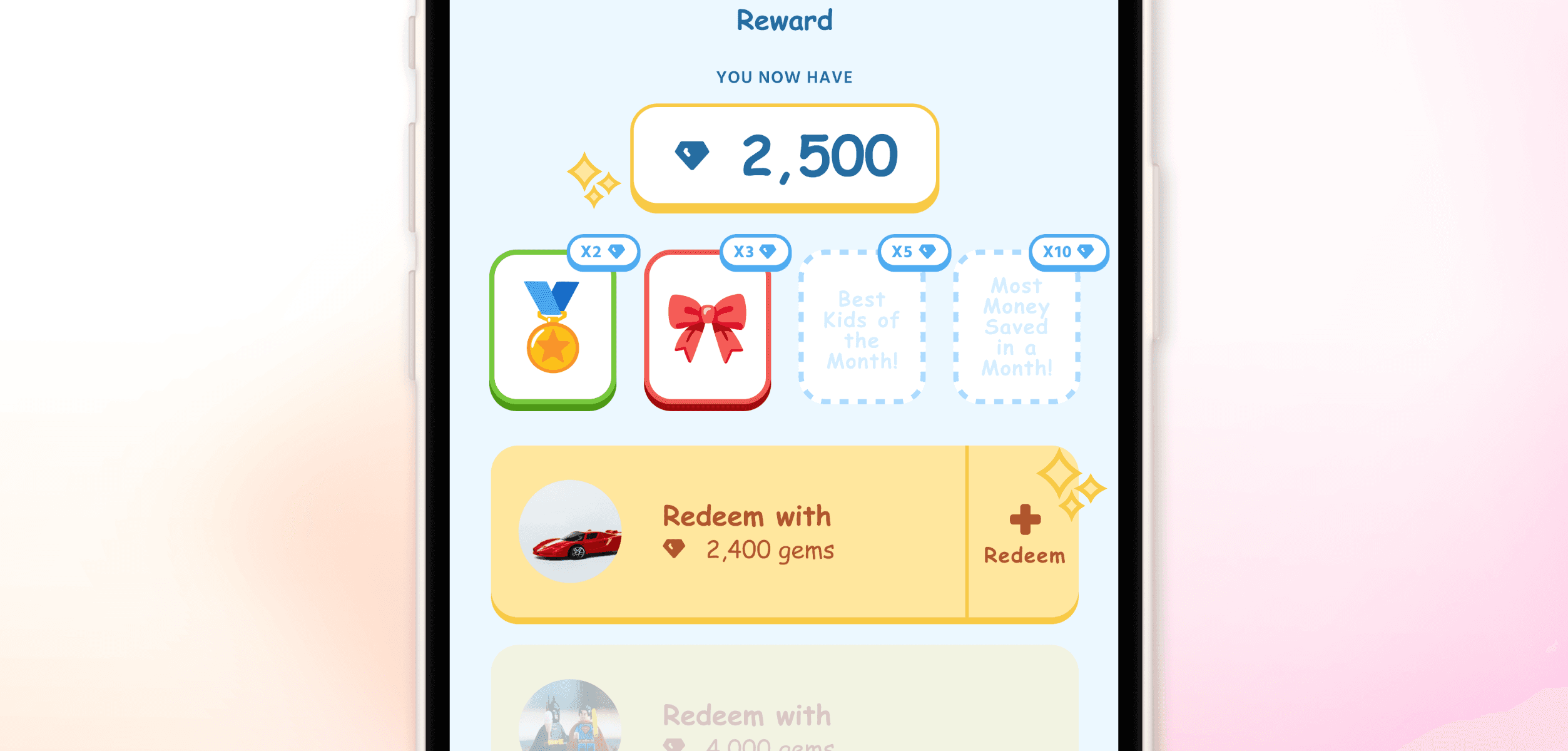 · Kids can redeem exciting rewards from their parents using the “Gems” they earn